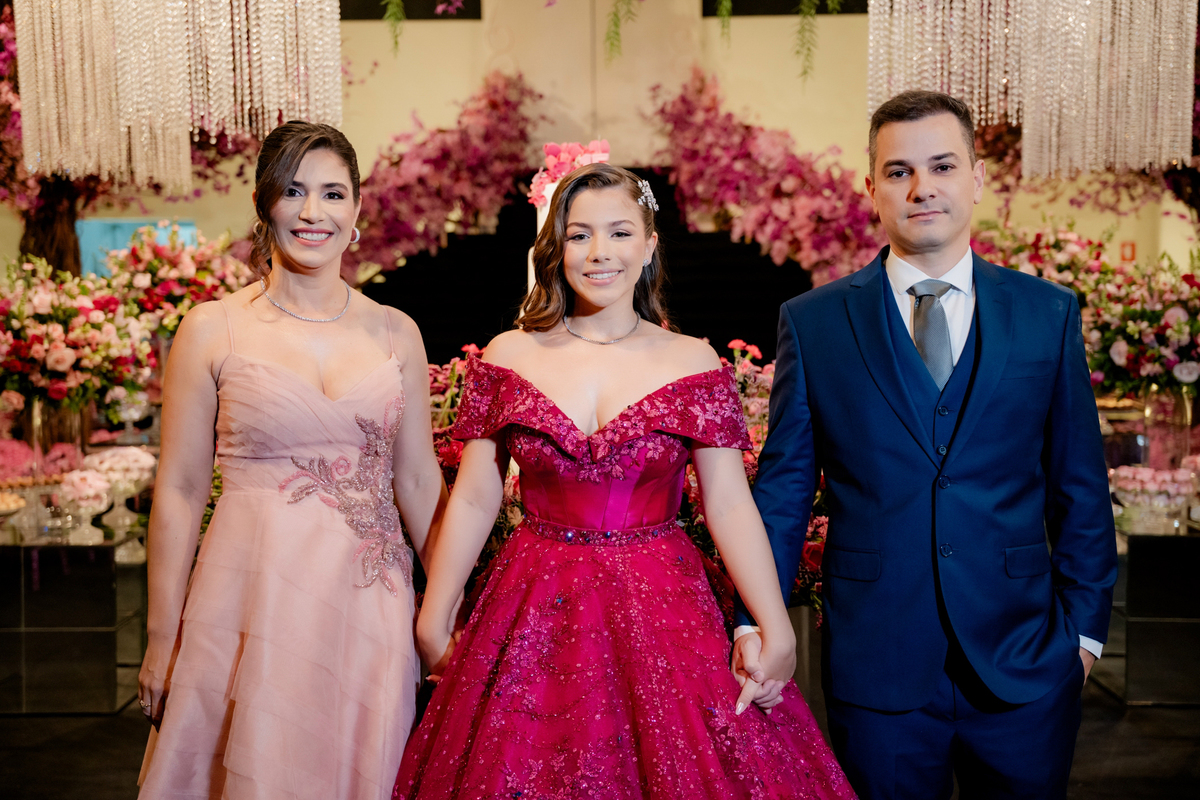A celebração de 15 anos da Ana Clara foi simplesmente inesquecível. Uma noite onde elegância, emoção e personalidade se encontraram em cada detalhe, criando uma experiência única do início ao fim.