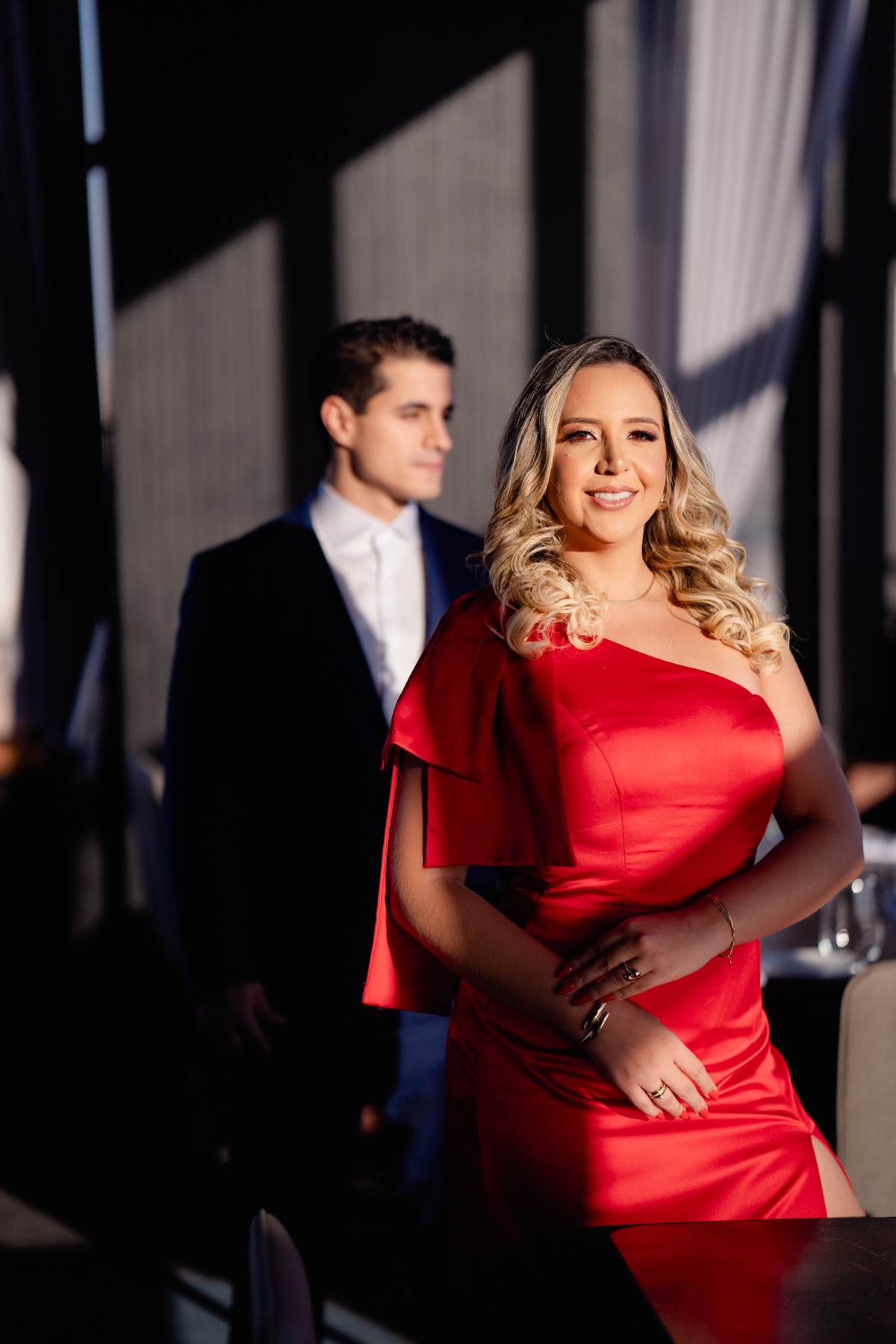📸 O ensaio fotográfico começou no elegante restaurante Gra Bistrô, onde exploramos uma produção glamourosa que combinou perfeitamente com o local.