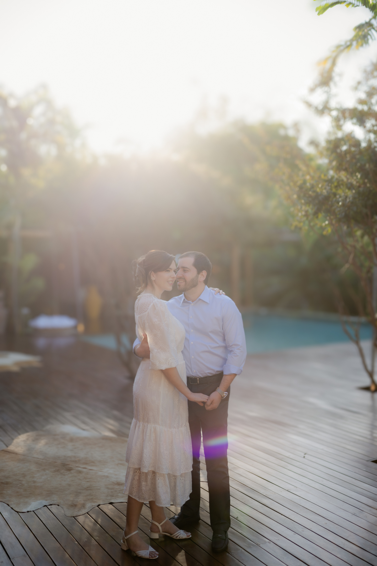 Na quinta, fizemos o ensaio pré-casamento 📸, e tivemos que entregar as fotos em tempo recorde, pois o grande dia já estava marcado para dois dias depois! 😮 O ensaio ficou incrível, o casal estava deslumbrante, e o cenário completou a magia. 💫